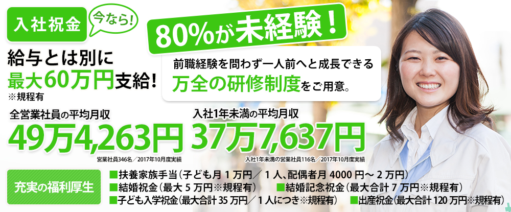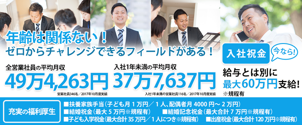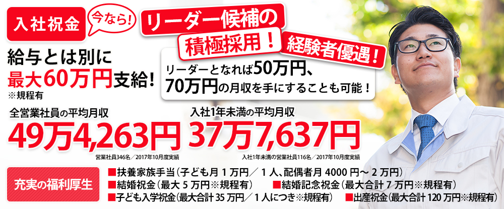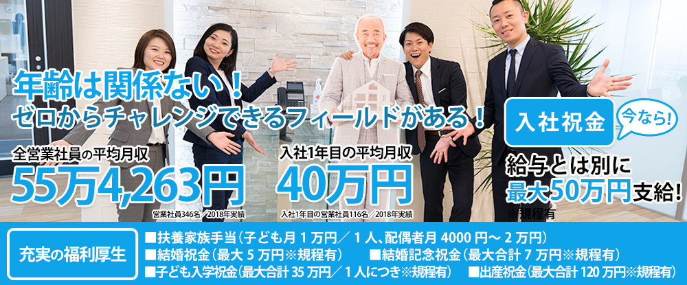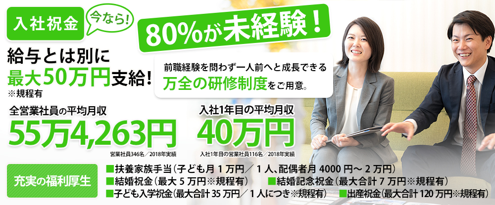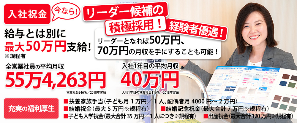住宅商品の提案営業◆未経験歓迎/高収入/社宅・寮 無料/幅広い年代で活躍中/基本定時帰社/直帰OK◆