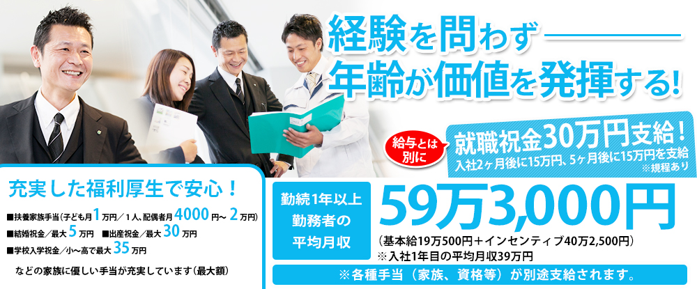 ●「稼ぎたい」というあなたの意欲を最も重視● #年収900万円超の先輩も多数在籍! #関東エリア勤務で転勤なし #幅広い年代が活躍中!50~60代の従業員比率34%! ~~経験がなくても、何歳でも...