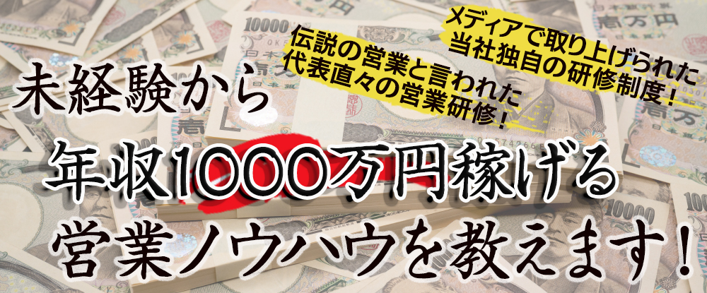 【稼げる環境でお迎え!】 研修期間は成果に関わらず高収入を保証し、 努力次第でさらに収入アップが見込めます。 年収900万円以上を叶える社員も多数在籍しています。 【未経験からでも売れるのは、高い...