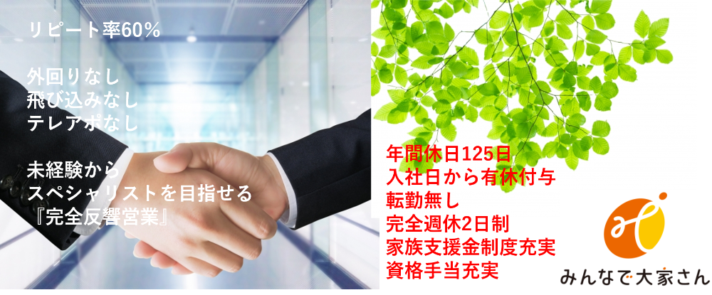 年収1000万も目指せる営業職◆未経験歓迎/ノルマ・テレアポなし/年休120日/残業少なめ◆
