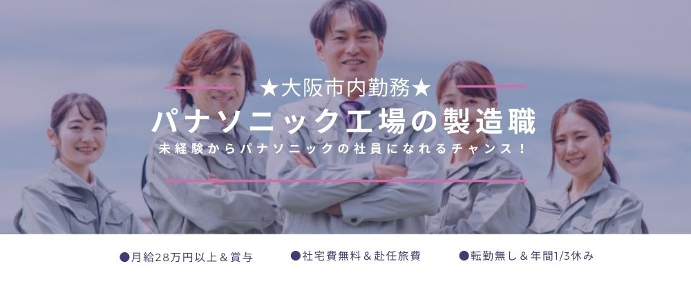 製造職◆パナソニック工場/未経験者歓迎/大阪市/簡単作業/直接雇用あり/賞与あり/食堂あり