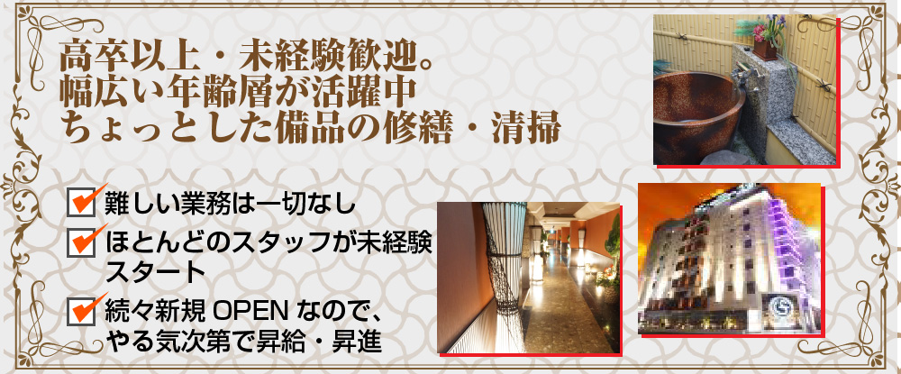 カラオケ・ホテルを支える施設メンテナンスス◆月給28万円~33万円/転勤なし/未経験歓迎/学歴不問◆