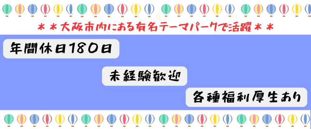 ★年間休日180日★プライベートもキャリアUPも重視で活躍!大阪市の有名テーマパークで活躍!