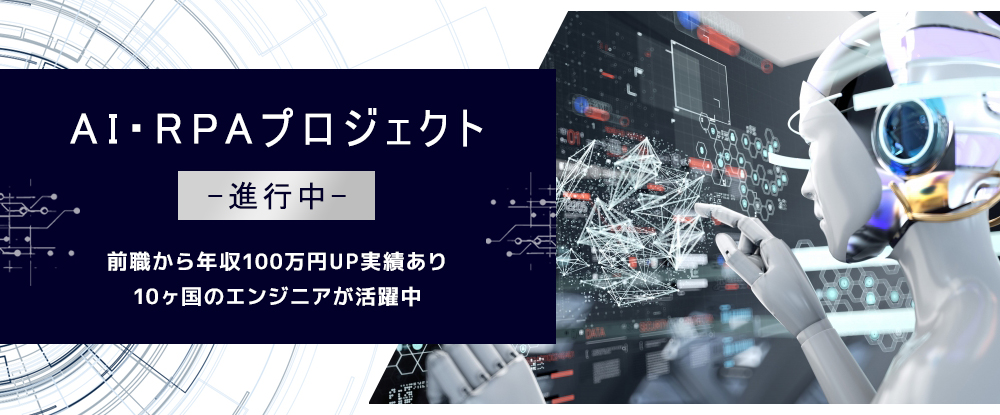 勤務地 東京都、埼玉県、神奈川県、千葉県のプロジェクト先 ※希望を考慮のうえ決定します。