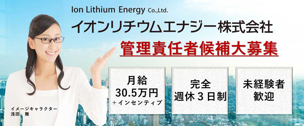 今回の募集はリチウムイオン電池の製造に関わるお仕事です。 未経験で入社した20代〜50代の幅広い社員が活躍しています! 大手企業での勤務の為職場環境は充実。安心して勤務が出来ます。 研修が充実して...