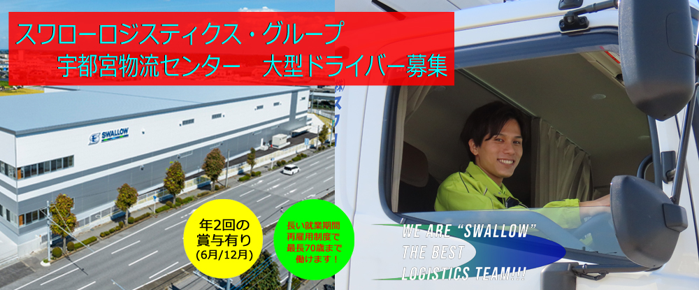 「スワロー輸送」、「スワロートラック」、 「千葉スワロートラック」、「京浜スワロートラック」の 物流会社4社にて、首都圏中心に 運送業務と物流センター運営業務を行っている当社。 有名スーパーやホー...