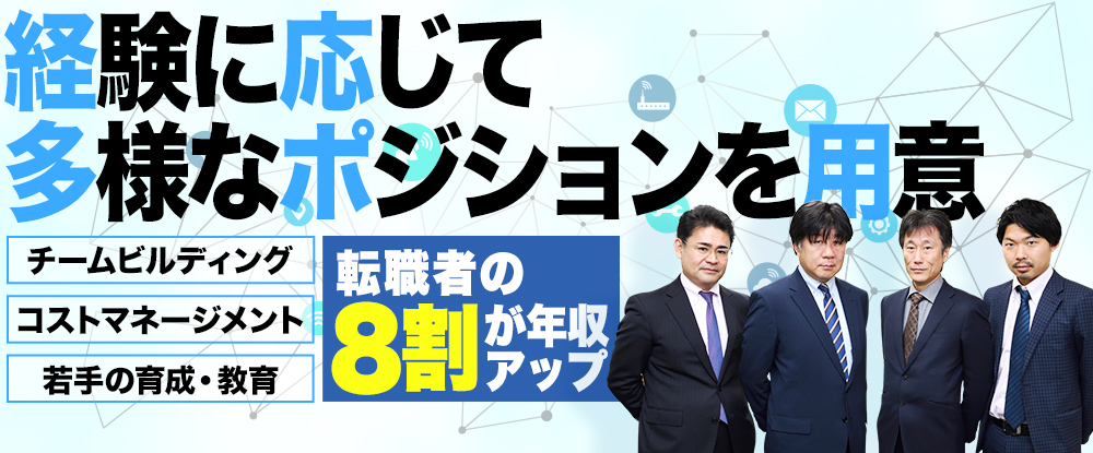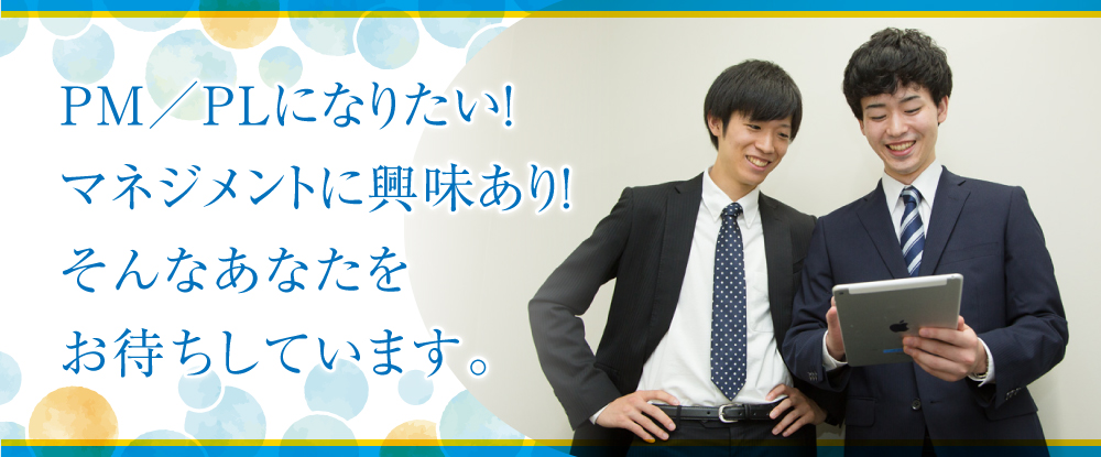 ・中規模程度のプロジェクトマネージメント経験を積んでもらいながら、大規模プロジェクトでのマネージメントが実践できるようになっていただきます。