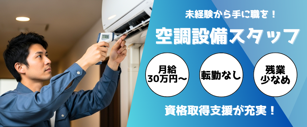 【正社員】空調設備スタッフ/未経験歓迎/残業月20時間以内/社宅・家賃補助あり/転勤なし