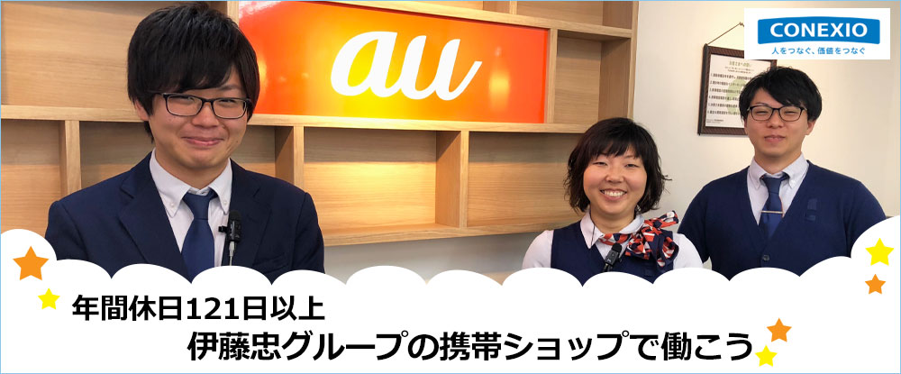 | 仕事内容 | auショップにてスマートフォンの提案・販売を行い、サービスプランの説明を行います。 |