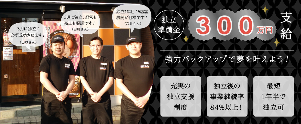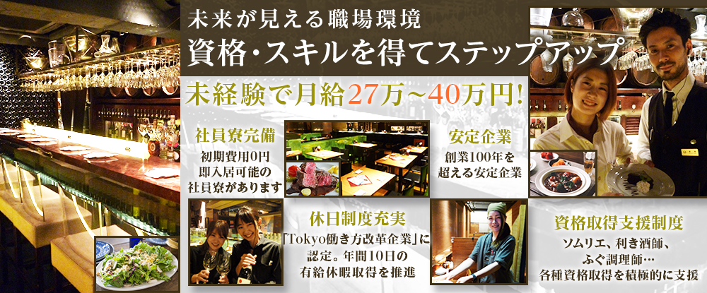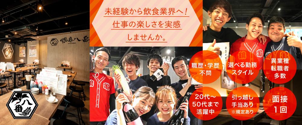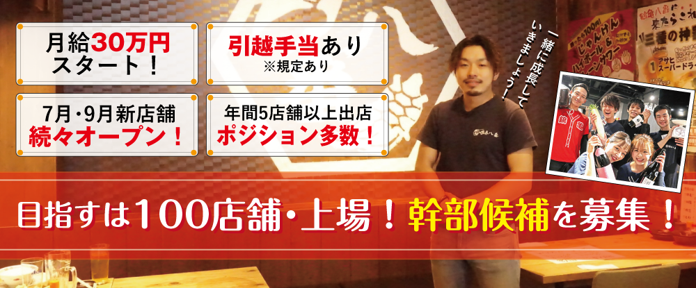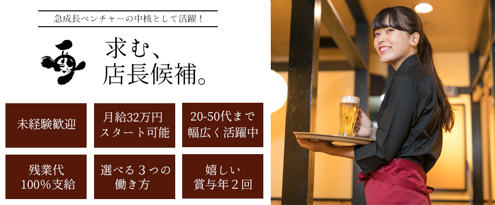 飲食経験を「待遇」「裁量」「成長」の3軸で還元!未経験月給30万〜、経験者は即店長候補も可能。