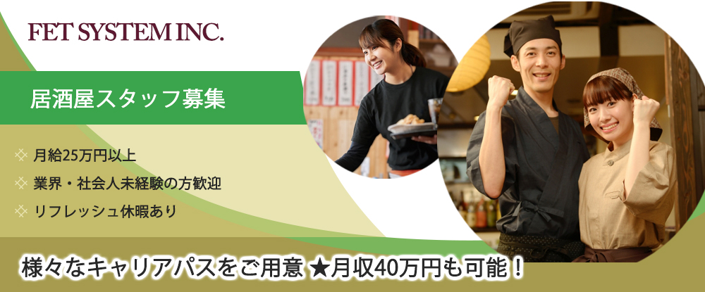 人気居酒屋の店長候補◆店舗スタッフ/高収入可/賞与年2回/未経験者歓迎/研修あり◆