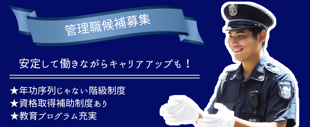 | 仕事内容 | イベントや施設の警備スタッフ★現場で経験を積んでいただき、徐々に管理職としての業務をお任せします! |