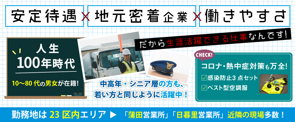 ■働きやすい環境が整っている■ 私たちは、特にシニア世代の方々が安心して働ける環境を整えています。 固定現場での勤務や、休憩所が完備されているため、 無理なく快適に過ごしながら仕事に取り組むことが...