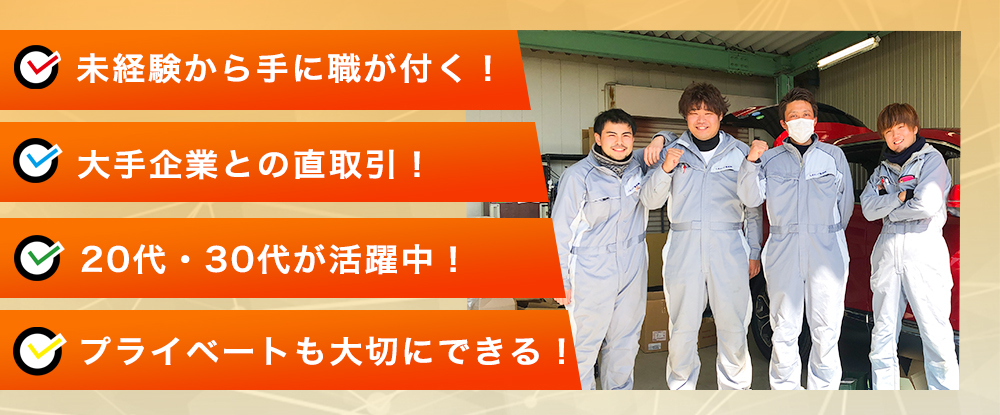■やりがいのある環境で成長できる■ 私たちの職場は、車好きな仲間たちが集い、共に成長する環境です。 未経験の方でも歓迎しており、先輩たちが丁寧に指導します。 技術を身につけながら、車に関する専門知...