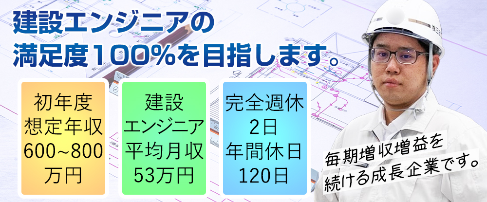 スーパーゼネコンや大手ゼネコン、サブコン、大手プラント会社などの プロジェクトをメインで手がけている当社。 昨今のコロナ禍においても、売上高四半期ベースで過去最高更新! /安定&成長企業です\ ~...