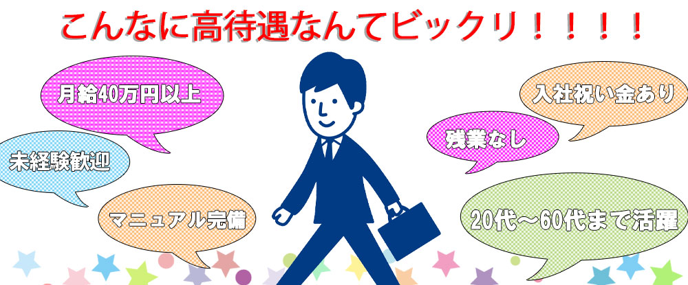 ★設立40年目を迎える安定企業  ̄ ̄ ̄ ̄ ̄ ̄ ̄ ̄ ̄ ̄ ̄ ̄ ̄ ̄ ̄ ■実力重視の社風 ■入社1年で年収500万円以上も可能 ■支社数は3倍以上に増加、事業拡大中 当社では成果を上げれば、入社数...