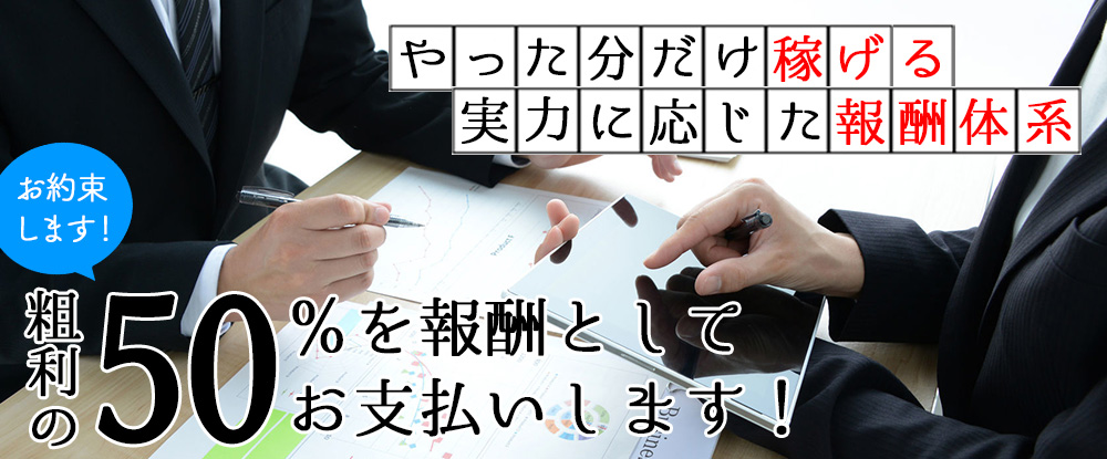 | 給与 | 成果報酬型 ※固定給ではありません ※エージェント契約となります 報酬率(還元率)は、約30%~8... |