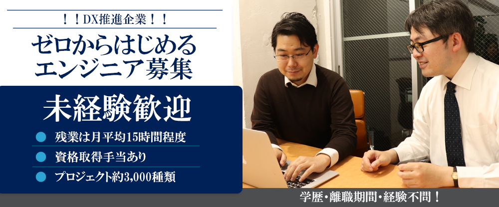 ■未経験からエンジニアのプロへ!■ ――――――――――――――――――― あなたの新しいチャレンジを応援します! 当社では、プログラミングの基礎から実践的なスキルまで学べる 充実した研修制度を...