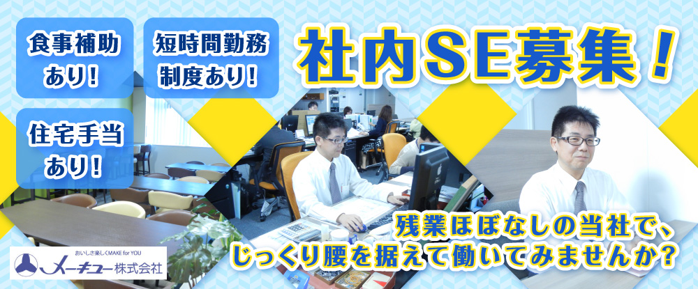 | 仕事内容 | 仕事内容 経営の基盤となるシステムの企画立案や導入、各種基幹システムとのIF構築業務を行っていただきます。 入社後は、ご自身の経験・スキル・志向に合わせた作業から従事していただきます。 当部署では... |
