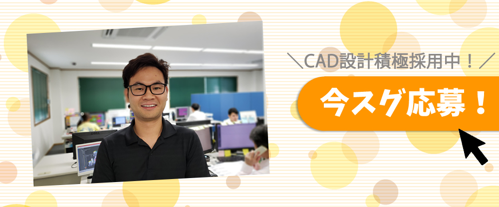| 仕事内容 | 幅広い業界の大手企業で、 CADを使った作図補助業務をお任せします! |