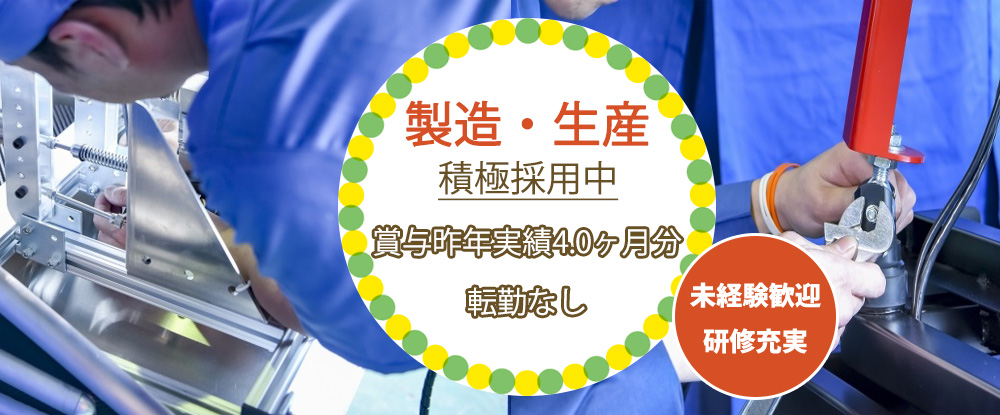 「「完全未経験でも働きやすい会社に転職したい方にピッタリ!」」 安心のサポート体制で完全未経験から、 モノづくりにかかわる正社員として活躍できるのが当社の特徴。 「馴染みのある地域・働きやすい職場...