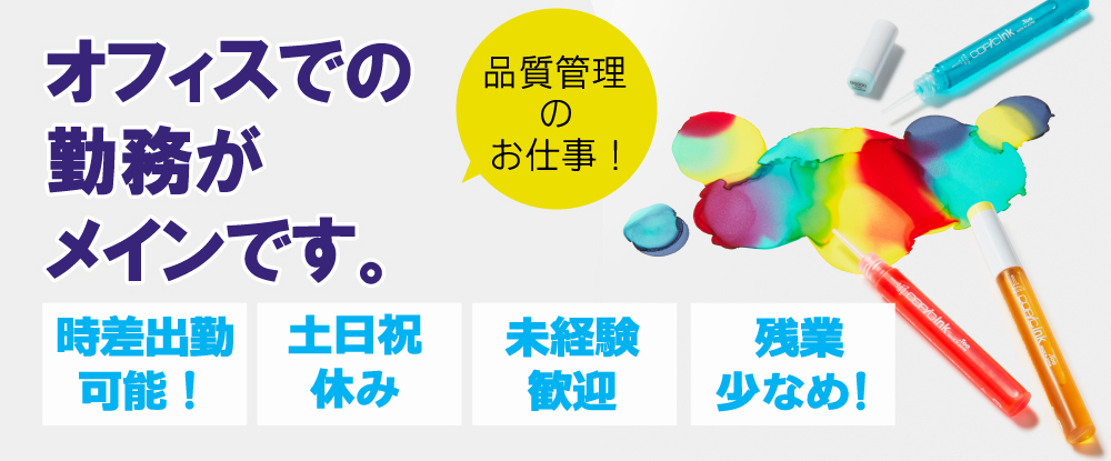 総合職(エンジニア・化学アシスタント・営業など)◆残業少なめ/柔軟な働き方可能/年間休日120日◆