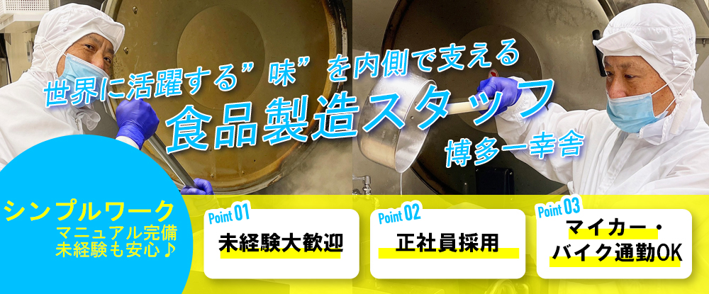 | 勤務地 | 柳川工場(福岡県柳川市田脇 213-1)※U・Iターン歓迎、マイカー通勤OK |