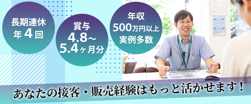 ■あなたの経験を活かすチャンス■ ――――――――――――――――――― 私たちのチームは、あなたのこれまでの接客経験や業界知識を存分に活かせる環境です。 お客様への最適な提案を通じて、 新たな価値...