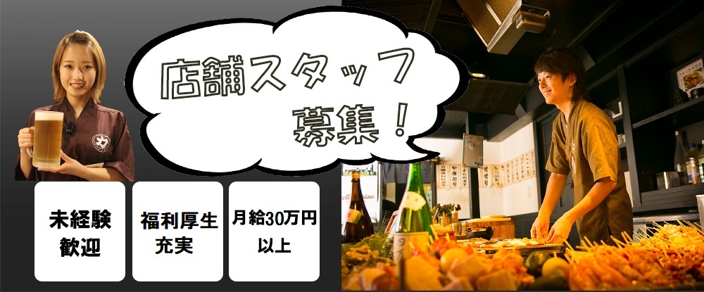 飲食経験を「待遇」「裁量」「成長」の3軸で還元!未経験月給30万〜、経験者は即店長候補も可能。