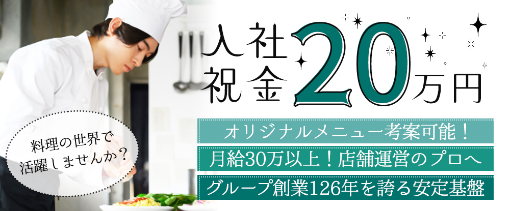飲食業界でキャリアを築きたい方へ。 入社後は3ヶ月~半年間の手厚い研修があり、 未経験の方も安心してスタート可能。高収入や昇格も目指せる環境で、 自分らしく働きませんか? …………………………………...