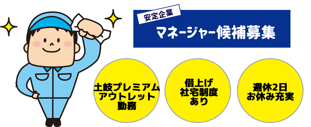 | 仕事内容 | 初めてでも大丈夫。あいさつと報告ができれば活躍できます! |