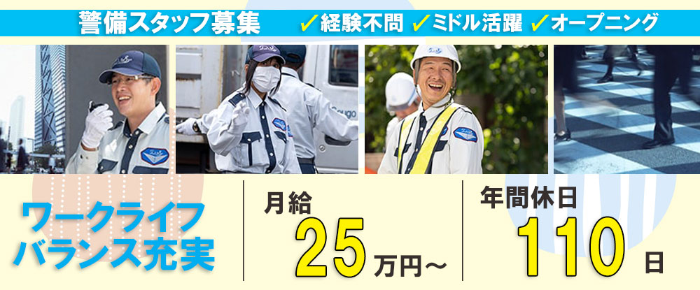 警備スタッフ◆未経験者歓迎/学歴不問/正社員/月給25万8000円~/各種手当/昇格あり◆