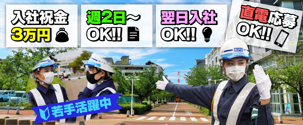 交通誘導◆未経験歓迎/入社祝い金あり/1日4h勤務からOK/基本日勤(夜勤も紹介可能)◆