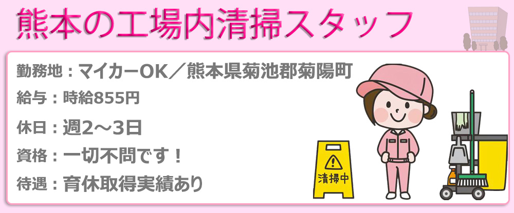 | 勤務地 | 《埼玉県越谷市、春日部市、松伏町、吉川市/マイカー通勤可》残業少/転勤なし◎ |