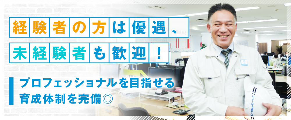 *充実した研修制度で安心スタート* ~~~~~~~~~~~~~~~~~ 未経験からプロフェッショナルへ! 約1か月の研修で専門知識をしっかりゲット。自信を持って現場へ飛び出せます。 手に職をつけたい...