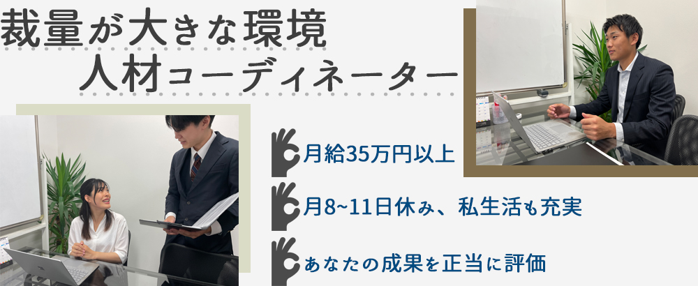 人材コーディネーター◆月給31万円~+賞与/週休2日制/土日祝休み/月平均残業20時間◆