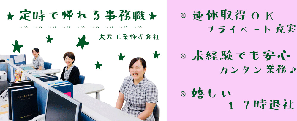 安定した収入と働きやすい環境で、 あなたのオフィスワークデビューを全力でサポートします。 未経験から始める方も大歓迎!! >>プライベート重視の方も働きやすい環境。 ★残業月平均10時間程度 >...