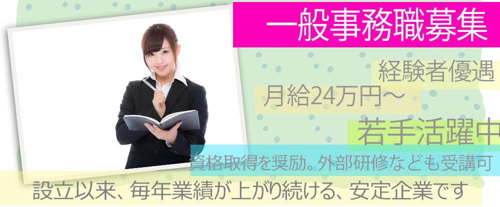 一般事務職◆未経験者歓迎/年間休日125日/研修制度充実/残業少なめ/履歴書不要◆