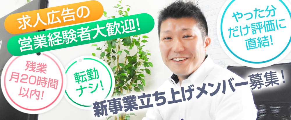 | 仕事内容 | ■業務内容 下記2軸の事業を推進いただきます。 ・加盟店向け広告事業 ・外部クライアント向け広告事業 (具体的には…) ・新規広告商材のサービス、企画立案 ・既存広告商材の事業化、営業戦略立案、... |