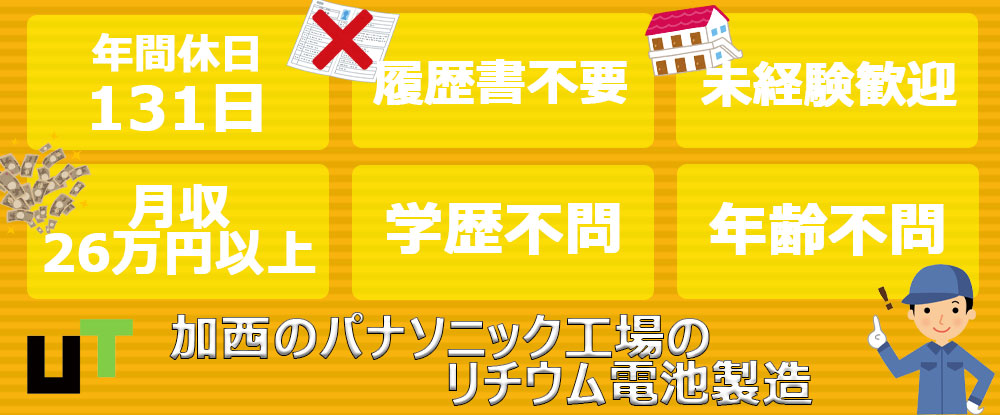 パナソニック工場の製造職◆未経験者歓迎/転勤無し/簡単作業/社宅費無料/月給28万円以上