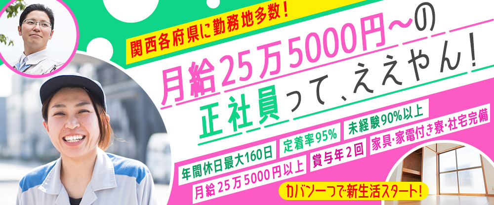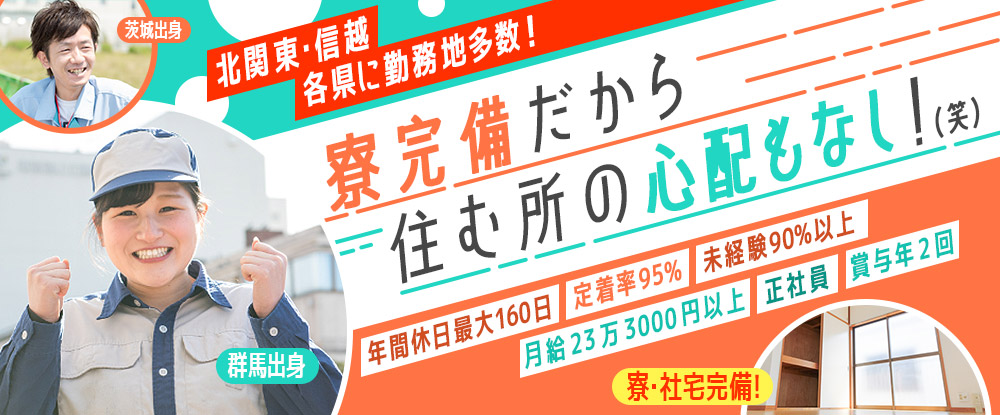 若手中心の職場でスキルを磨こう!高収入&安定環境!家具付き寮と手厚い福利厚生で新生活をサポート!