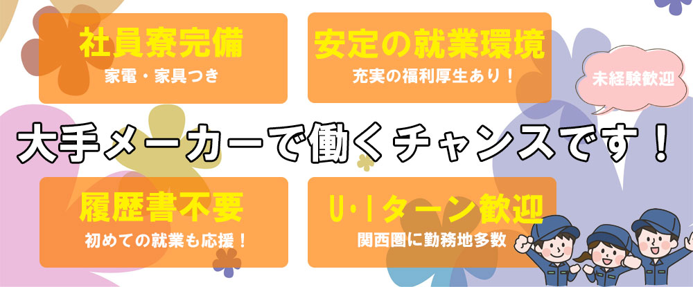 \\全国約400カ所の案件をご紹介可能!// 大手・有名メーカーへの転籍実績多数!! 「プライベート重視」「ガッツリ働いて稼ぎたい」 「一人暮らししたい」「貯金したい」などなど… 当社なら、あなた...
