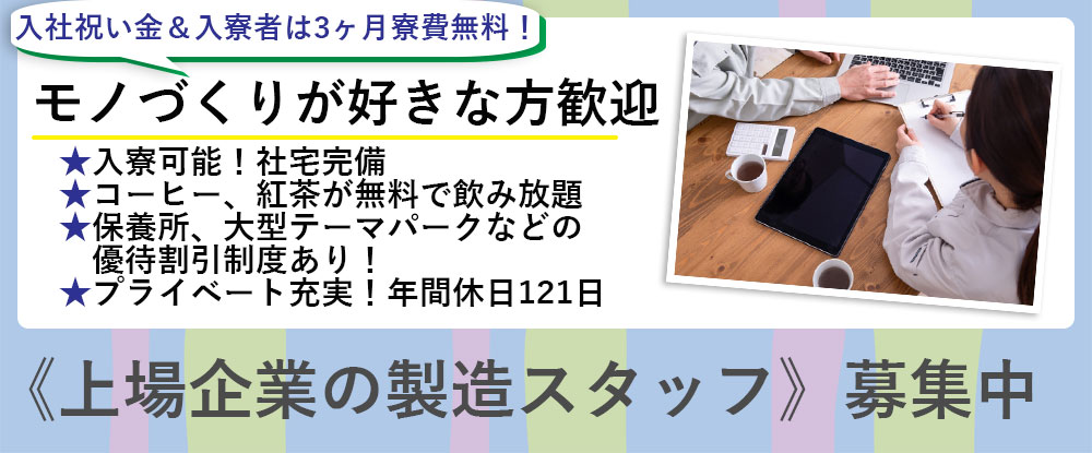 ものづくりスタッフ◆未経験歓迎/学歴不問/賞与年2回/大手メーカーでのお仕事/年間休日120日◆