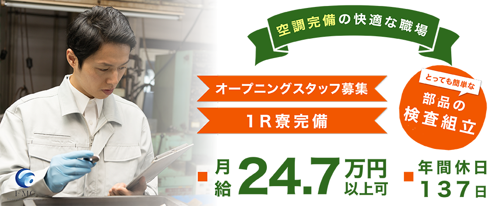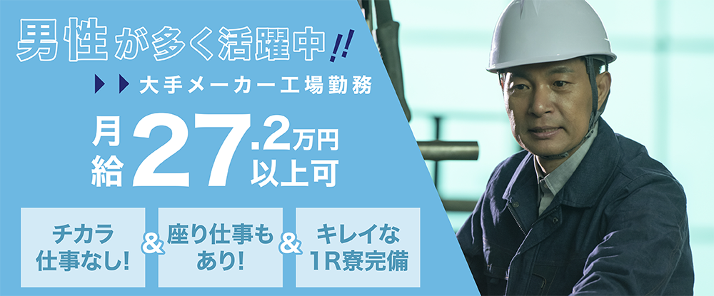今回の募集はリチウムイオン電池の製造に関わるお仕事です。 未経験で入社した20代〜50代の幅広い社員が活躍しています! 大手企業での勤務の為職場環境は充実。安心して勤務が出来ます。 研修が充実して...