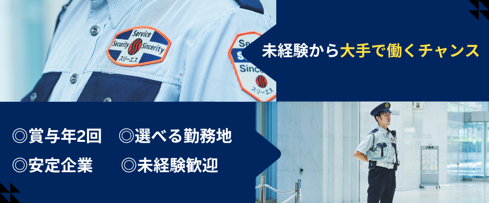 私たちスリーエスは、日本管財(東証プライム上場)とセコム(東証プライム上場)の合弁会社。 上場企業2社の安定基盤を土台に、施設常駐警備を展開しているセキュリティサービス企業です。 勤務地はご希望を考...