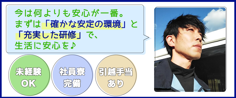 🛡️ 未経験からスタートできる安心の環境 ・経験・資格不問で応募可能。18歳以上なら誰でもチャレンジできます。 ・国家資格取得もサポート!費用は会社が全額負担。 📈 キャリアアップのチャンス...