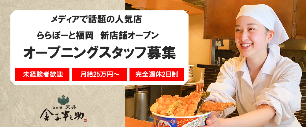 未経験から店長・マネージャーへ!自由度の高いシフト(完全週休2日)高収入で飲食業界に挑戦しませんか?