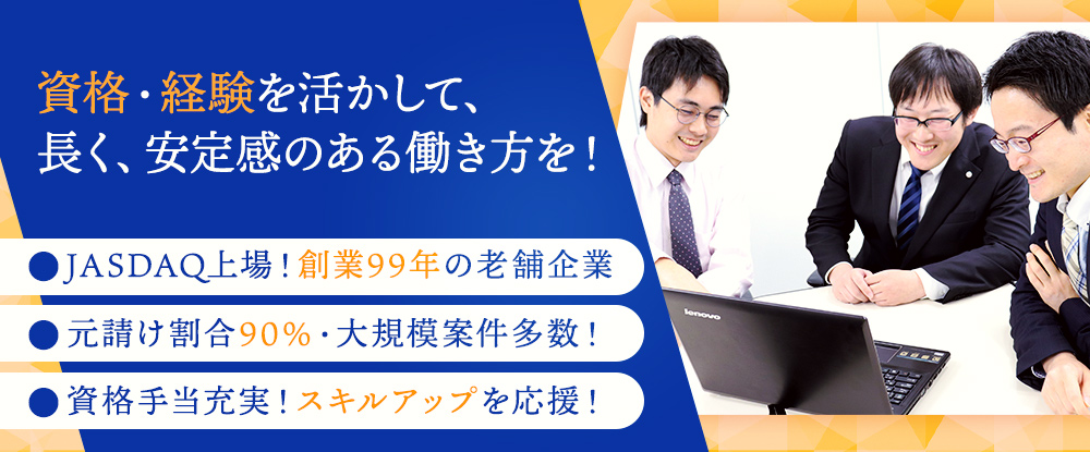 | 仕事内容 | 公共工事(一般土木、橋梁、舗装、河川、水道施設)の元請で施工管理を行います。 (主任技術者以上) 受注する工事のランクは2億円規模、1年弱工期の工事が中心 総合的に工事に関わることができます。 ・... |