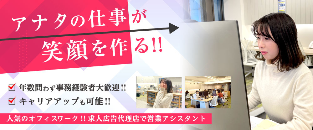未経験から始める事務スタッフのキャリアに興味をお持ちのあなたへ。 当社は、「教育体制に自信あり」と豪語するほど、 半年間で350名以上の新人を育成してきた実績があります。 この職種、特に未経験者の方...