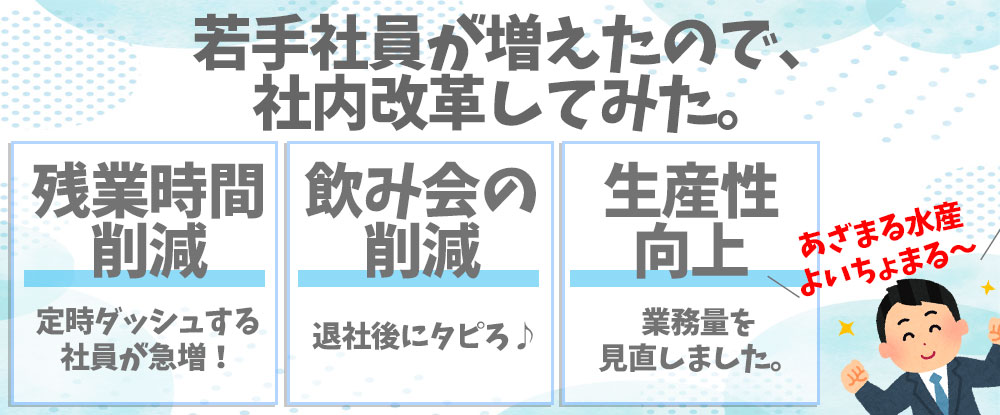 | 仕事内容 | 先輩社員とともに、現場のスタッフが効率よく、働きやすい環境を整えるお仕事です |